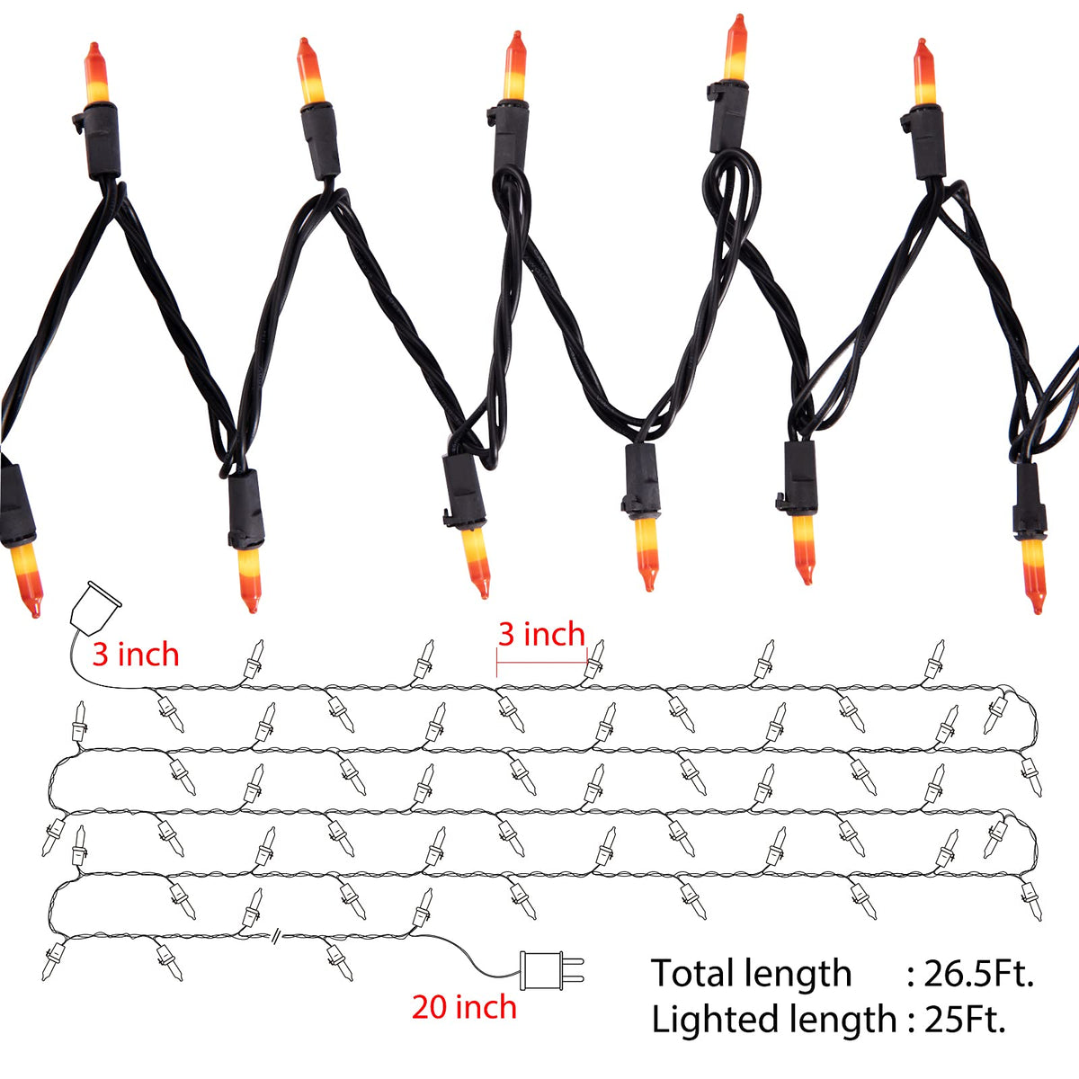 • End Extension: Up to 5 sets of same mini incandescent string lights connectable, which will make you get 125 feet 500 lights to customize your need for large area decorations, creating a grand view of haunting mood. 3 inches tail cord with key designed female connector for speedy connection