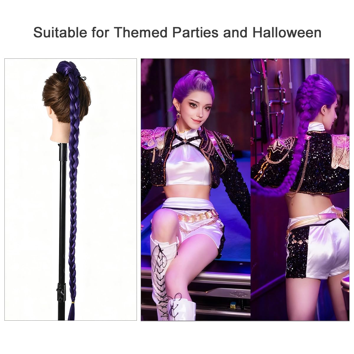 • Great for Quick Changes: Ideal for events where you need to switch characters or hairstyles fast. The purple braid is crafted with attention to detail, offering a natural, thick, and realistic look.