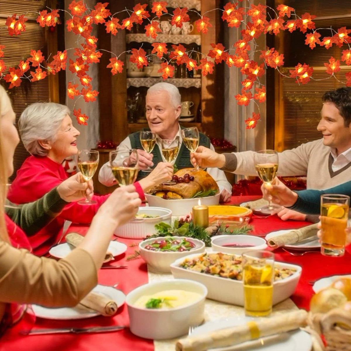 TURNMEON 2-Pack 20ft Maple Leaf LED String Lights